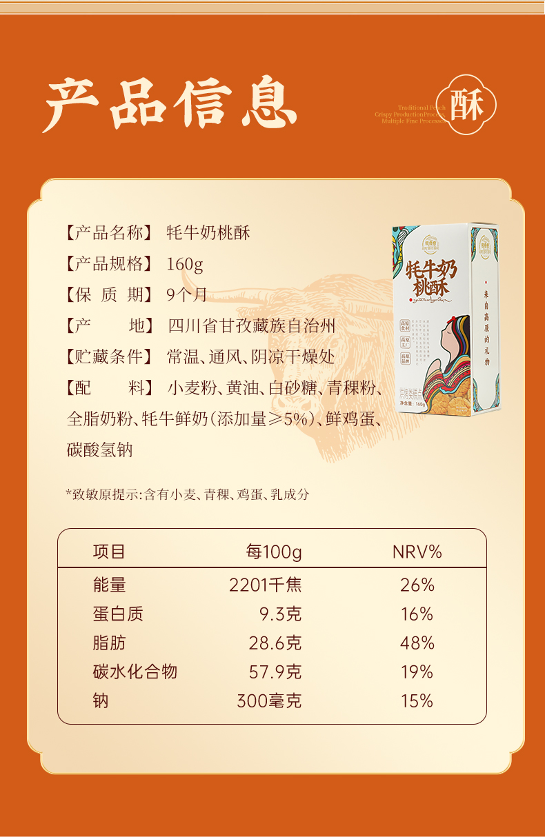 密奇奇牦牛奶桃酥160g/盒(2盒起购)