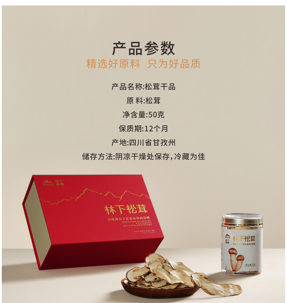 林下森物 林下松茸松茸干品( 一级)50g/盒富含多糖与氨基酸 天然鲜香 煲汤调味营养又美味