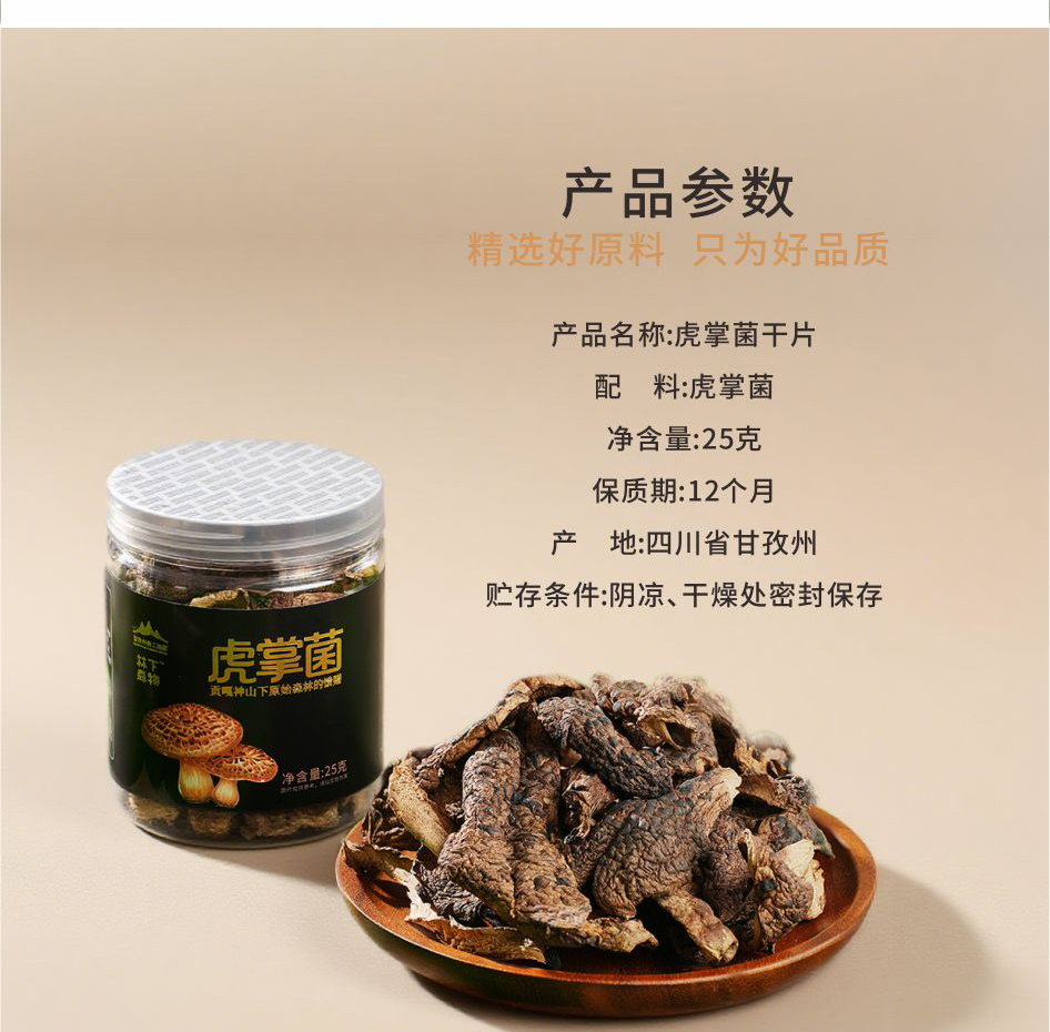 林下森物 虎掌菌干品尝鲜装50g/瓶肉质肥厚 低脂高纤