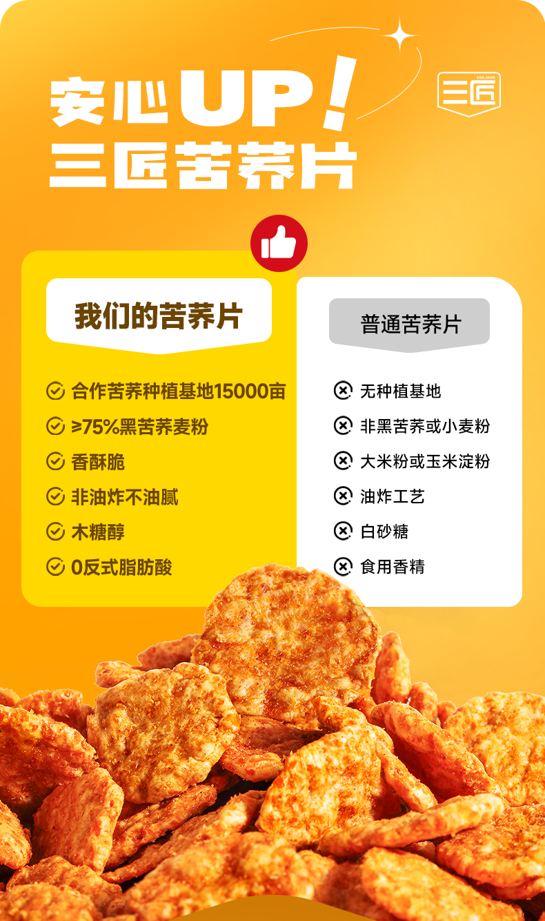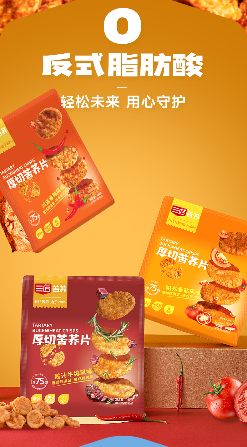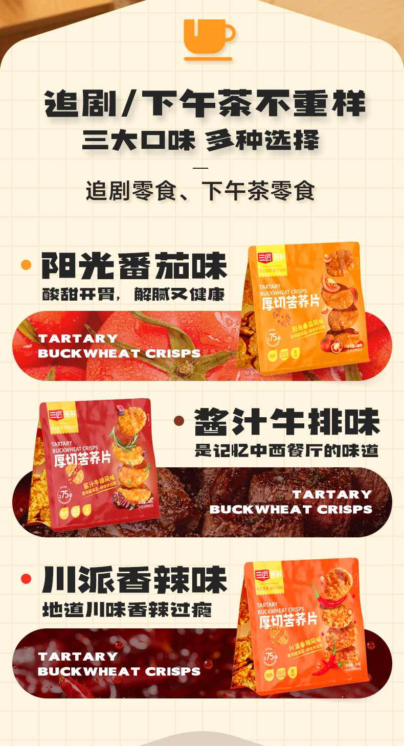 三匠厚切苦荞片180g番茄酱汁牛排香辣味锅巴饼干休闲零食