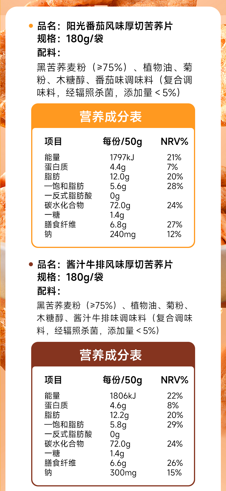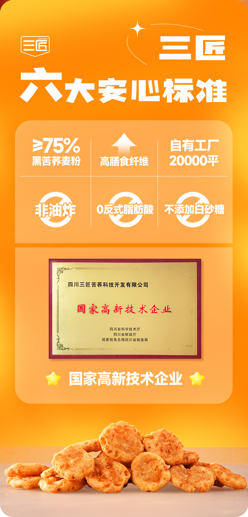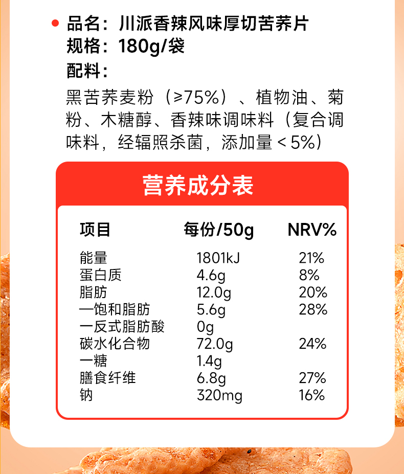 三匠厚切苦荞片180g番茄酱汁牛排香辣味锅巴饼干休闲零食