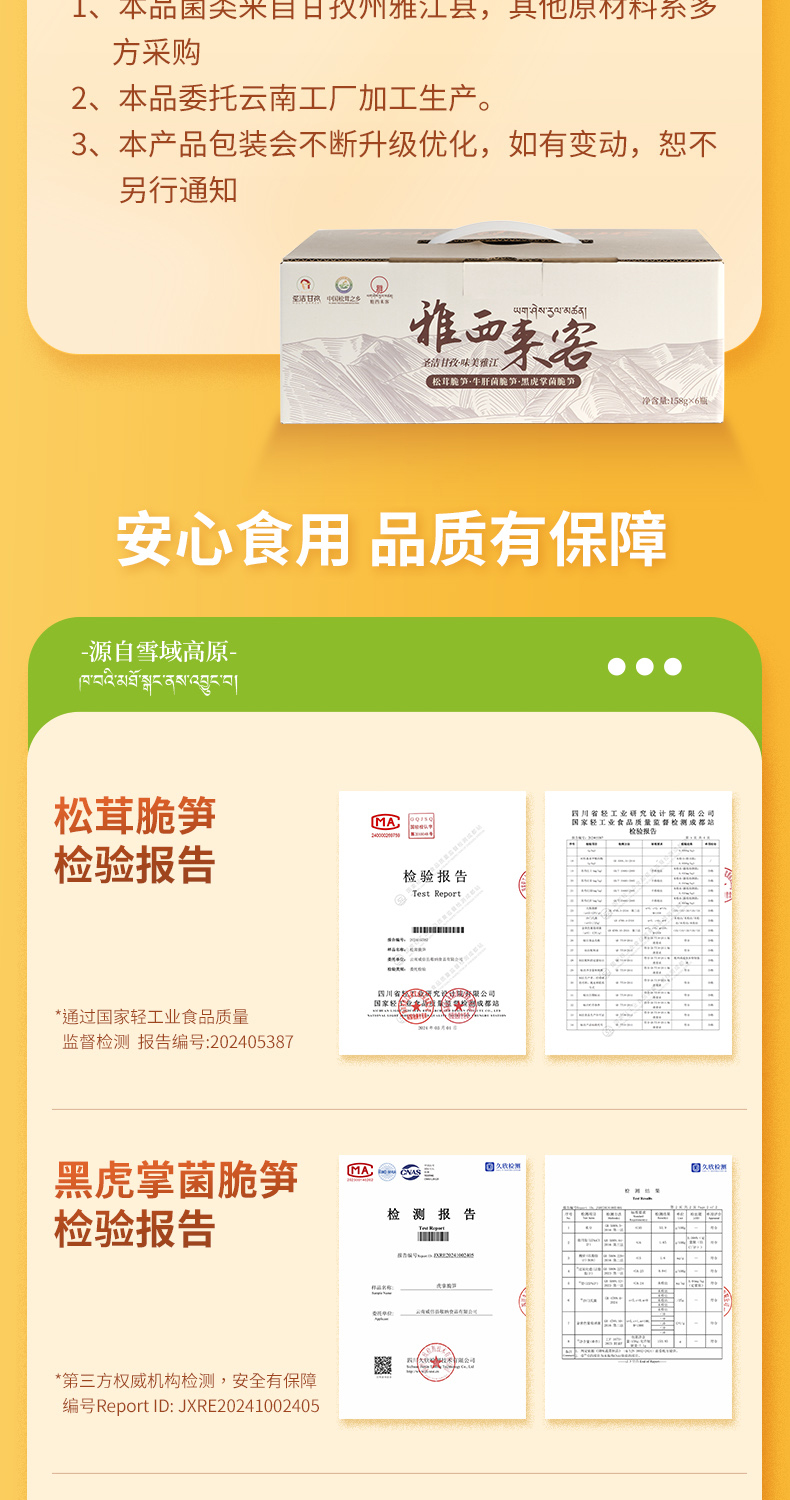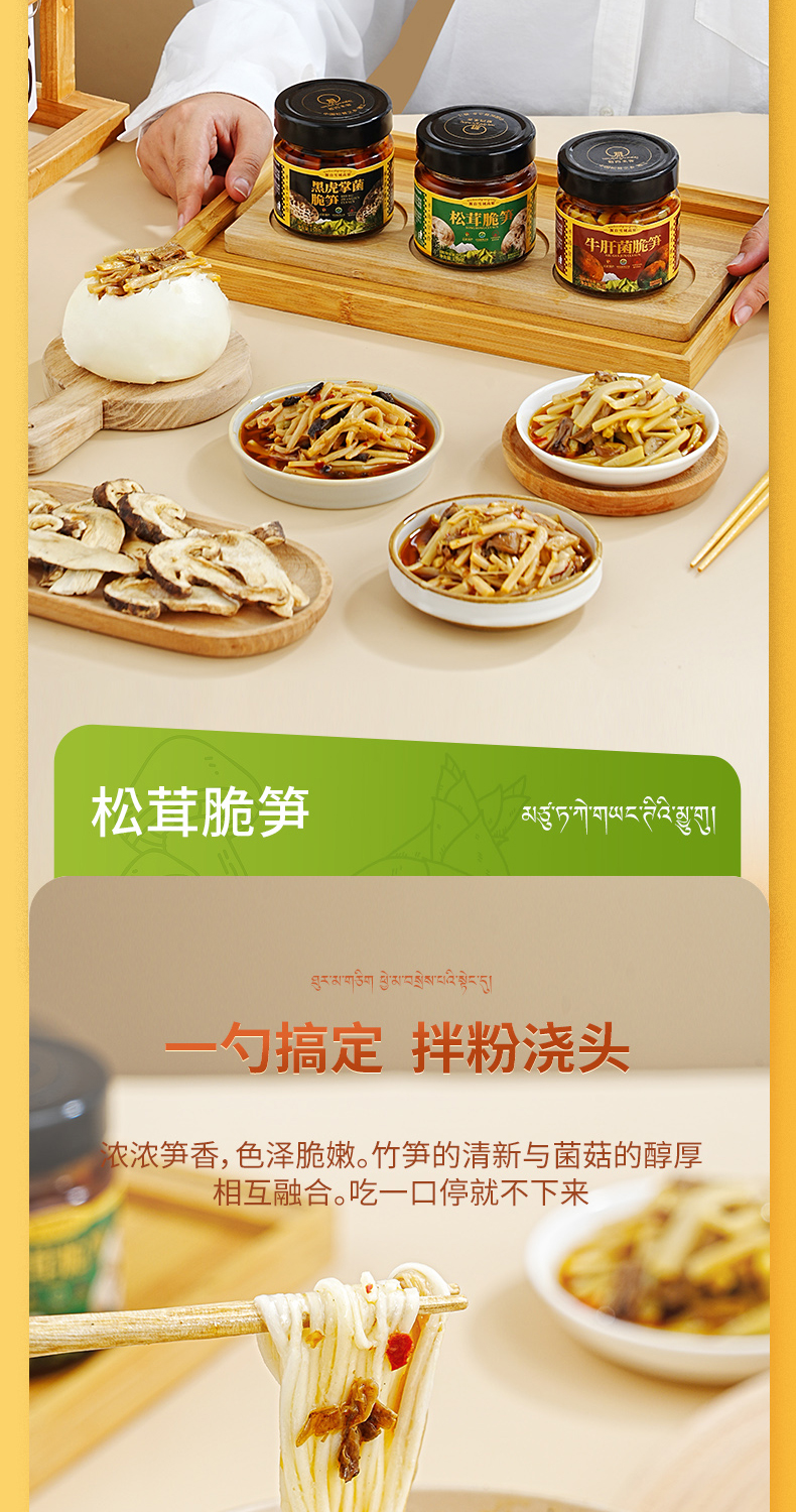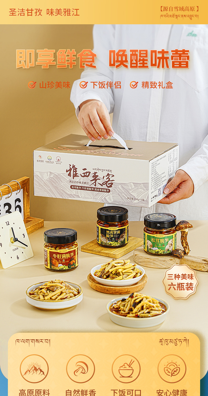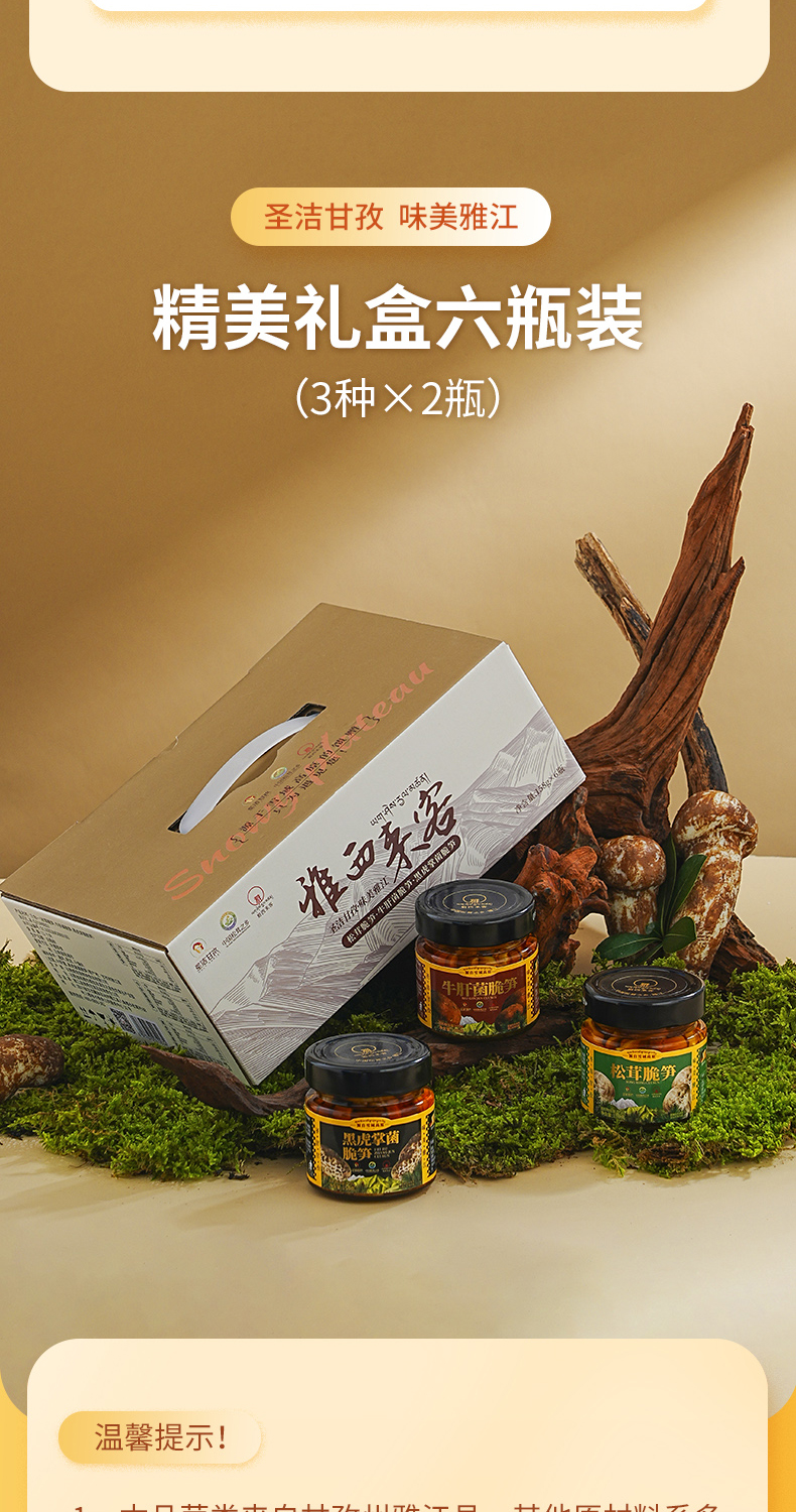 雅西来客三合一(牛肝菌脆笋、黑虎掌菌脆笋、松茸脆笋)六瓶组合三种美味158g*6瓶