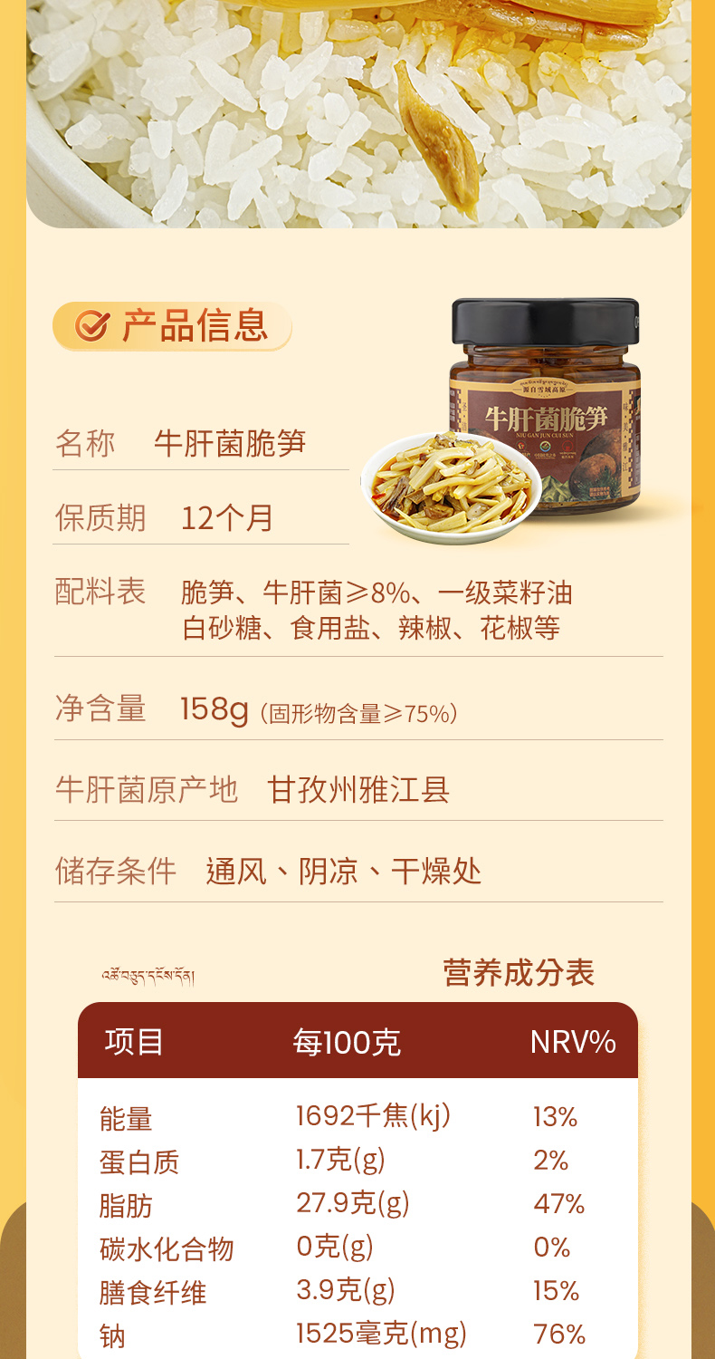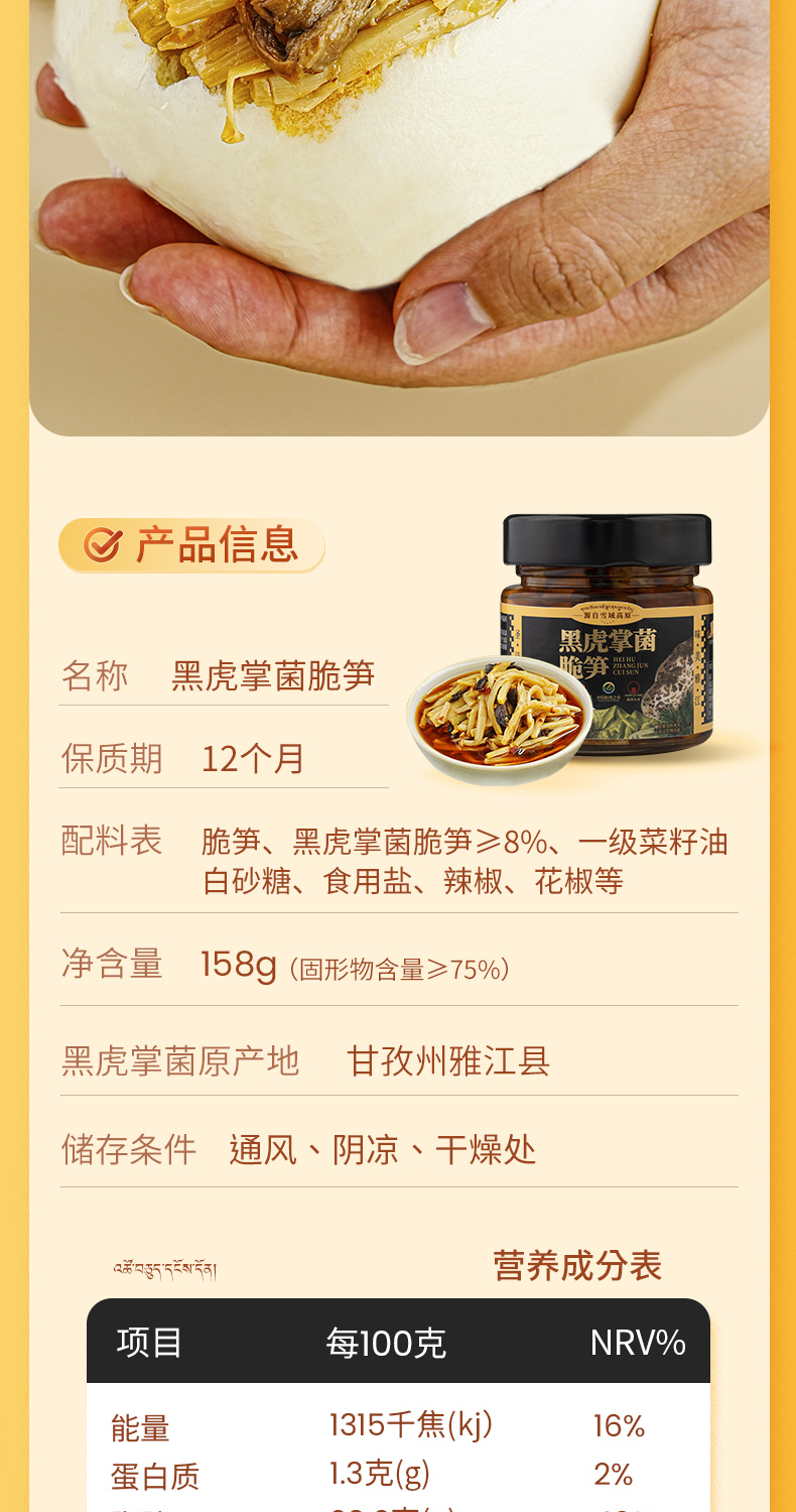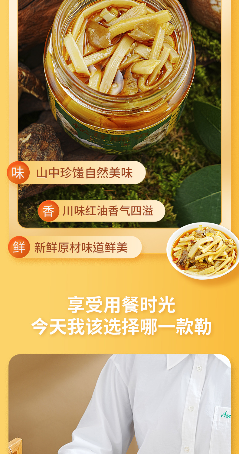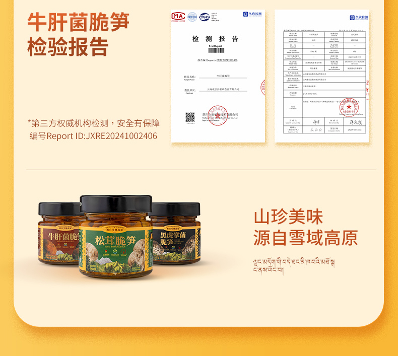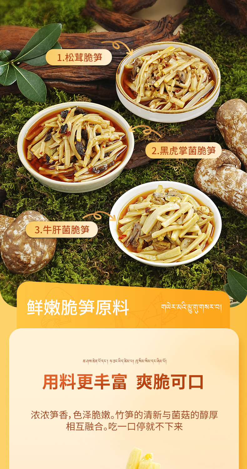 雅西来客三合一(牛肝菌脆笋、黑虎掌菌脆笋、松茸脆笋)六瓶组合三种美味158g*6瓶